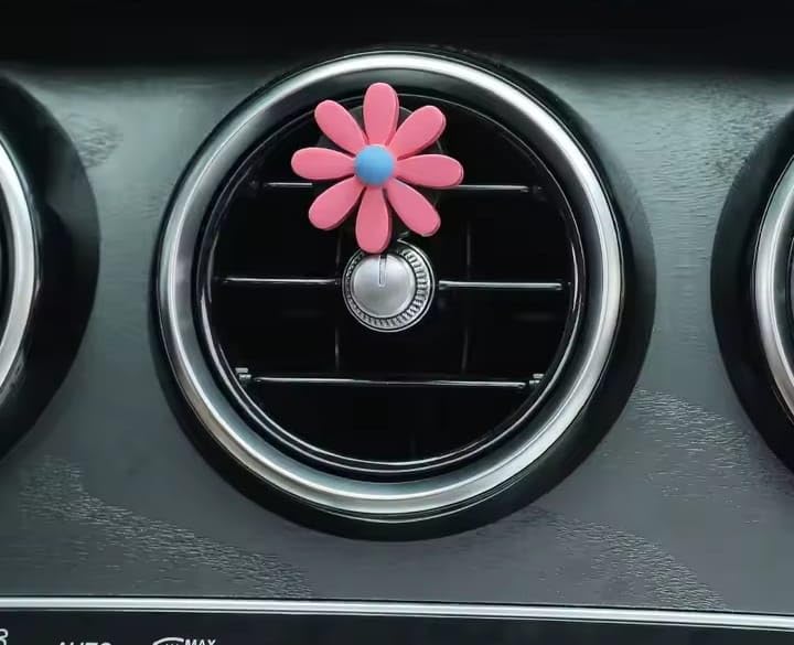 Generic - مشابك زهور أقحوان ملونة لتزيين فتحة تهوية السيارة، اكسسوارات التصميم الداخلي لتابلوه السيارة، لون وردي وأبيض، قطعتين مع أقراص عطرية