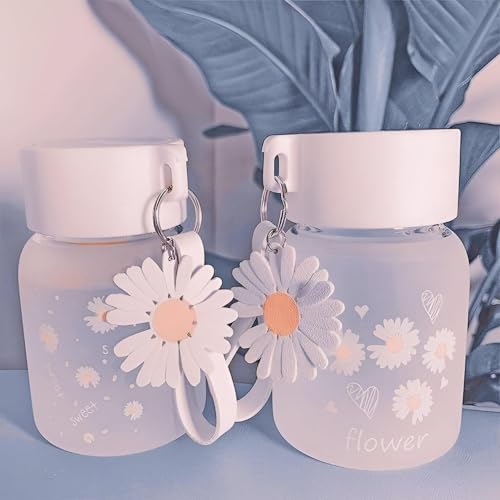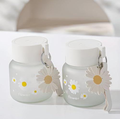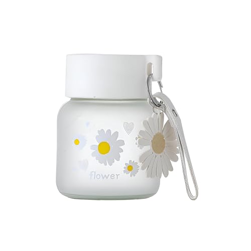 Generic - زجاجة مياه زجاجية فروستد من دايزي - 300 مل تصميم لطيف محمول مع مقبض حبل، مثالية للمكتب والمدرسة والسفر والاستخدام الخارجي، تحافظ على المشروبات ساخنة او باردة طوال اليوم