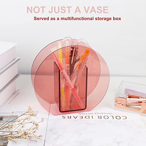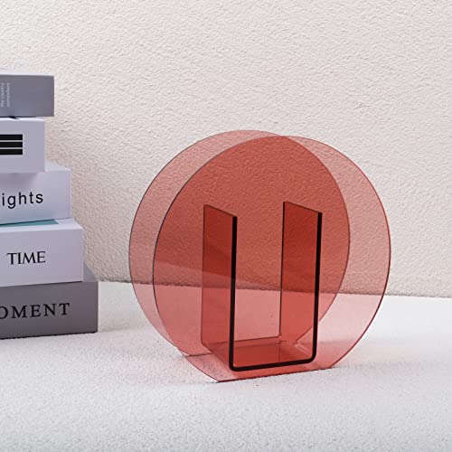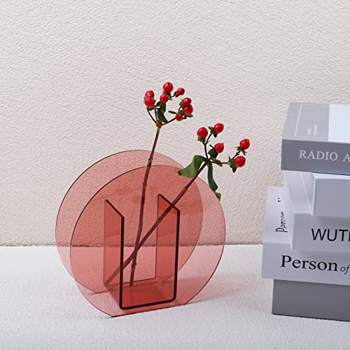 DaizySight - فازة زهور من دايزي سايت، من الأكريليك لديكور حديث غير تقليدي، فازة زهور من البلاستيك دائرية فريدة من نوعها لغرفة النوم وطاولة غرفة المعيشة - لون أحمر غامق وفاتح، شكل دائري