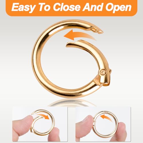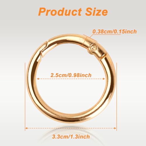 - 【مواد عالية الجودة】حلقة التثبيت الذهبية المستديرة الخاصة بنا مصنوعة من خليط معدني من الزنك عالي الجودة، متينة ومقاومة للاهتراء دون تشوه، مقاومة للصدأ والتآكل، سطح أملس لن يخدش يدك، ولن تبهت مع الاستخدام طويل الأمد، مثالية لملحقات الشنط