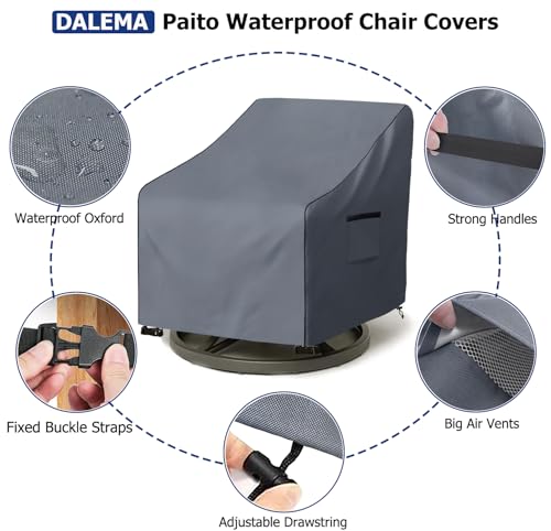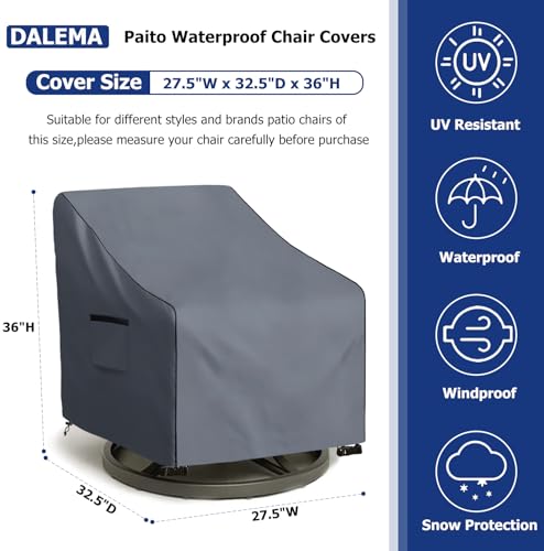 Dalema - غطاء الكرسي الدوّار الخارجي، مصنوع من خامة متينة مقاومة للماء بنسبة 100%، يوفر حماية كاملة لأثاث الحديقة أو العشب من مختلف الظروف الجوية من داليما، قطعتين، 69.8 سم × 82.5 سم × 99 سم، رمادي