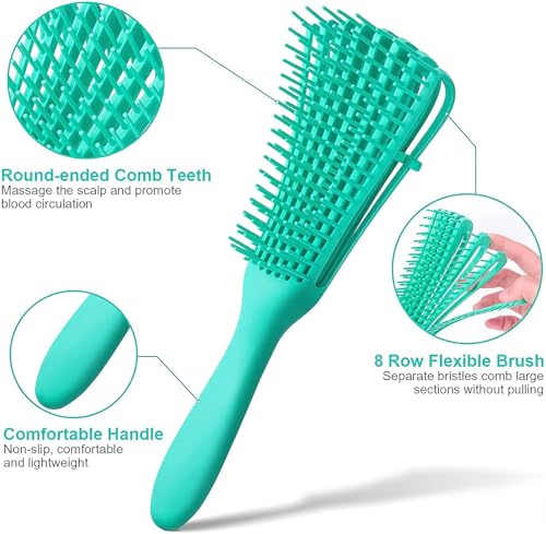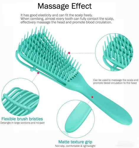 Daletu - مشط شعر على شكل أخطبوط، فرشاة فك تشابك الشعر الأفريقي لتجعيد الشعر، مشط فك تشابك الشعر الأفريقي 3a الى 4C للشعر المموج والرطب والجاف والطويل والكثيف والمجعد من داليتو (لون أخضر)