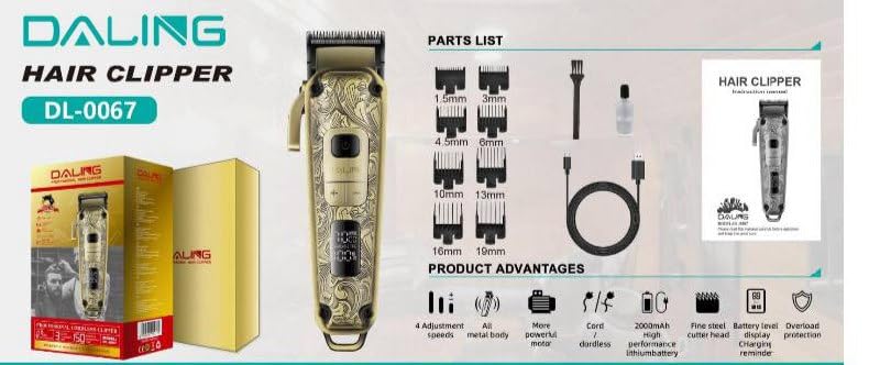 Generic - DALING ماكينة حلاقة الشعر واللحية المهنية، معدنية، 4 أمشاط، 3 مستويات سرعة، محرك قوي 7000 دورة، شحن 3 ساعات، تشغيل 150 دقيقة، DL-0067