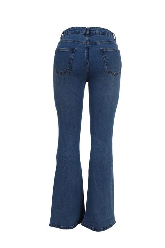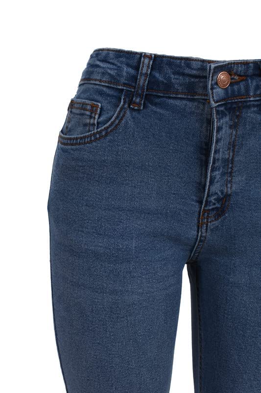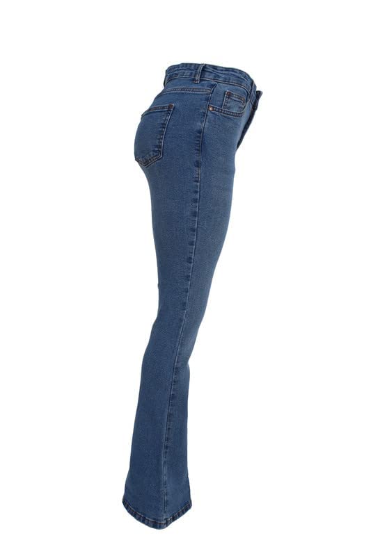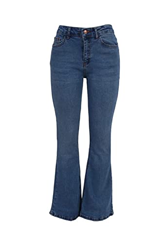 DALY - بنطلون جينز تشارلستون سادة متوسط الارتفاع من دالي - أزرق للنساء