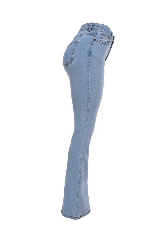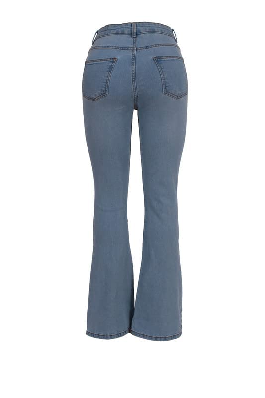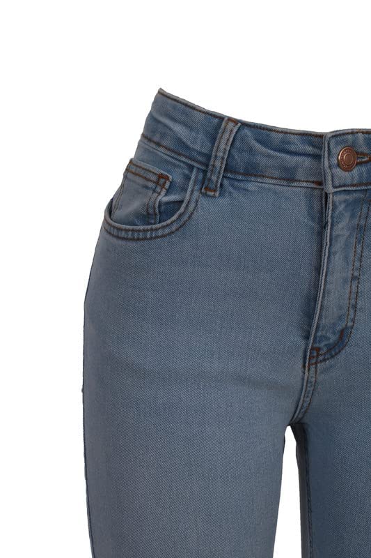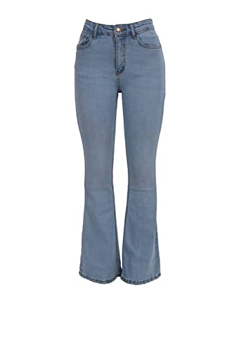 DALY - بنطلون جينز تشارلستون سادة متوسط الارتفاع من دالي - ازرق فاتح أزرق 28 للنساء