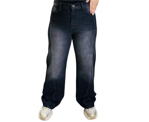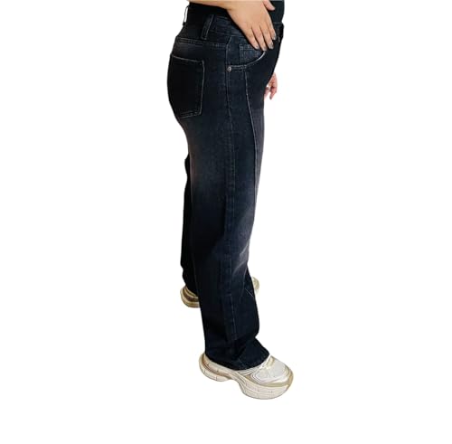 DALY - DALY بنطلون جينز للنساء وايد ليج بقصه اماميه