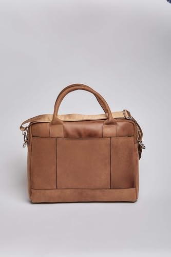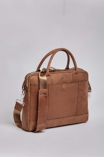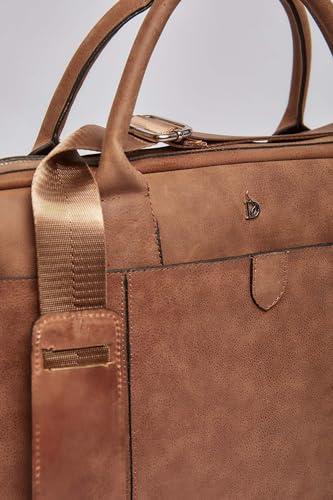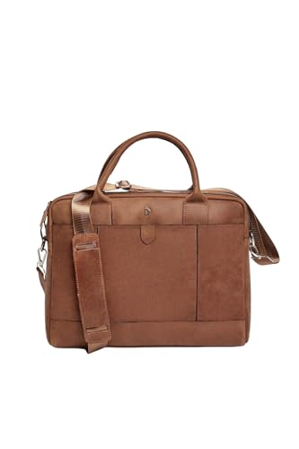 DALYDRESS - شنطة كمبيوتر محمول من الجلد الطبيعي للرجال، مزودة بسوستة أمامية وحزام كتف قابل للتعديل من دالي دريس، بني، مقاس موحد
