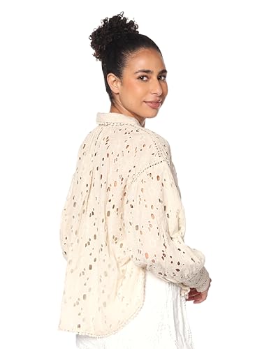 DALYDRESS - قميص عصري كاجوال مميز بطبعة بدون أكمام وبرقبة على شكل حرف V من دالي دريس، بلوزة نسائية ملونة فضفاضة (أبيض، M)