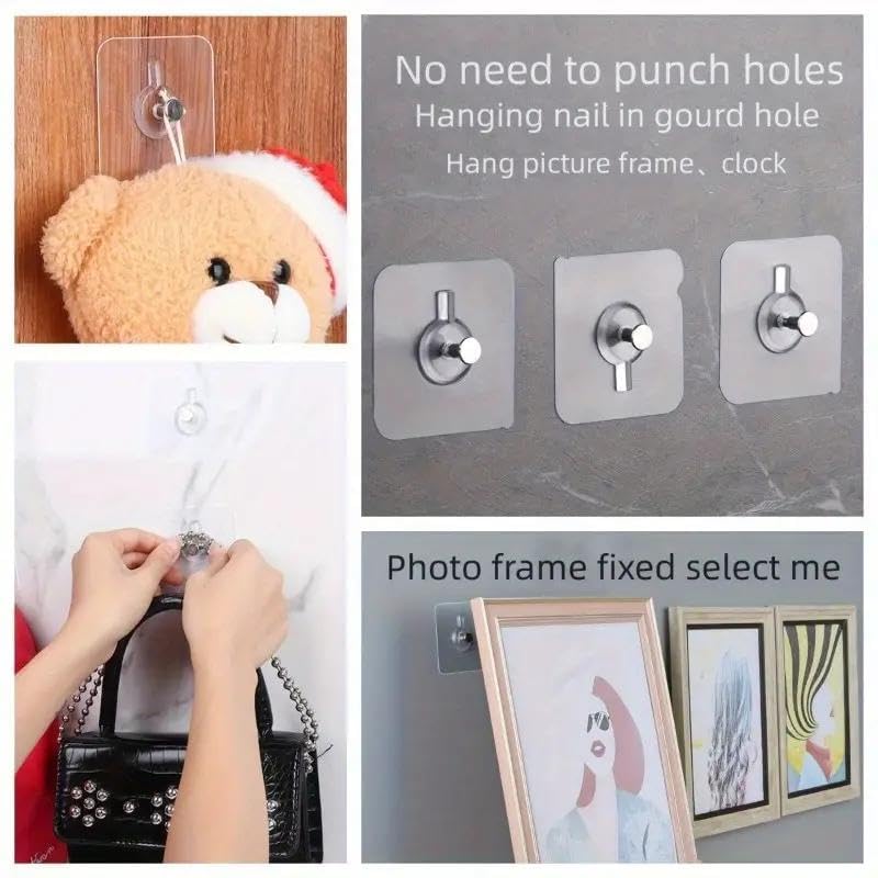 Generic - خطافات للتثبت على الحائط بدون ثقب: 10 خطافات شفافة ذاتية اللصق لإطارات الصور واللوحات والساعات - تصميم مضاد للخدش مع خطاف بتصميم مسمار مقاوم للماء، متعدد