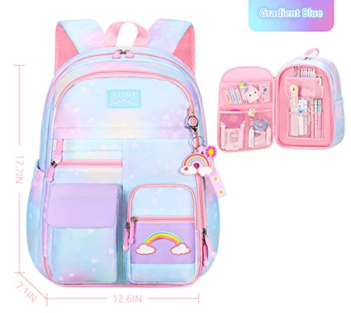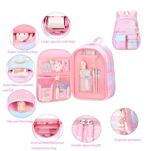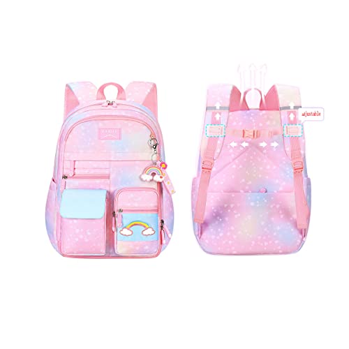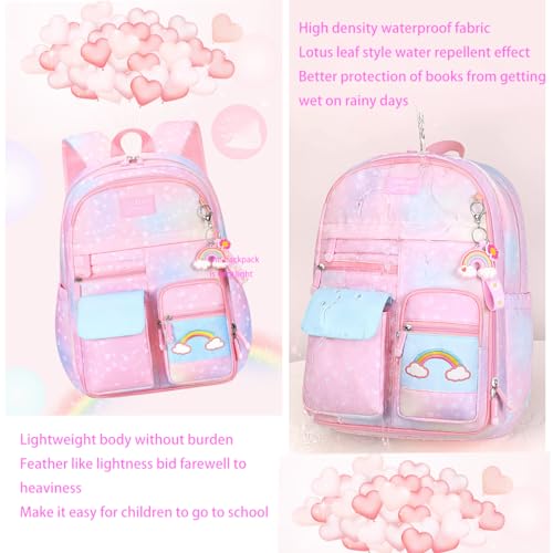 Damaiyiyi - شنطة ظهر للبنات والأطفال، شنطة مدرسية بتصميم رسومات كواي عليها قوس قزح وقلوب بسعة كبيرة للبنات من DAMAIYIYI