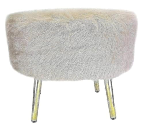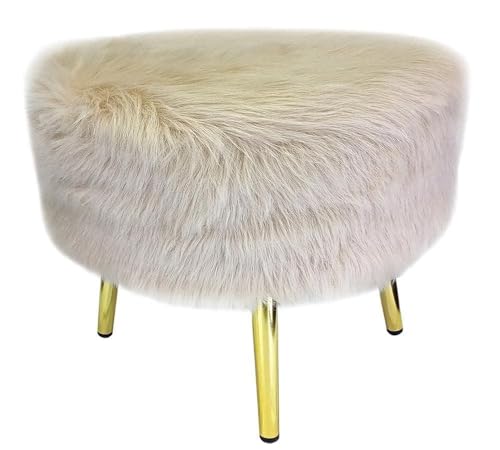 Damietta-Furniture - كرسي منتفخ من الفرو لون بيج، كراسي باطار وارجل معدنية ذهبية