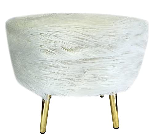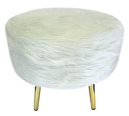 Damietta-Furniture - كراسي باف واريكة، فرو ابيض، كراسي مع قوائم اطار معدني ذهبي