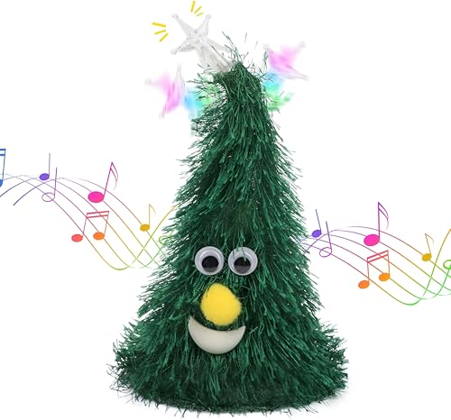 Generic - شجرة كريسماس راقصة - قطعة ديكور صغيرة 16 سم، تقلد الحركات المفعمة بالحيوية وتغني ألحان العطلات وتضيء برقة، كما تضيف سحرا إلى الرفوف وأسطح الطاولات والتجمعات العائلية (تصميم 2)