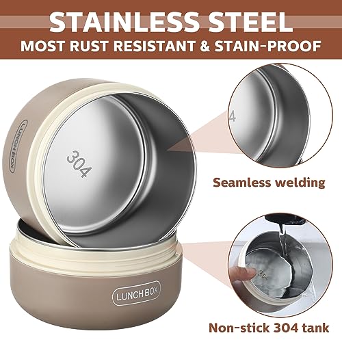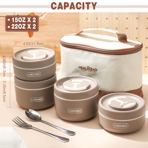Dandat - داندات 4 قطع حاويات غداء بينتو محمولة معزولة من الستانلس ستيل، صندوق غداء دائري امن للاستخدام في الميكروويف وقابل للتكديس ومانع للتسرب للبالغين من الرجال والنساء مع شنطة معزولة، 74 اونصة (كاكي)