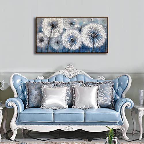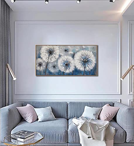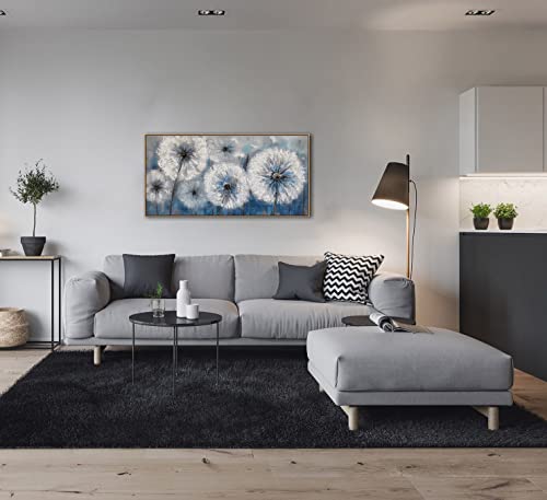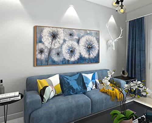 Pogusmavi - لوحة فنية جدارية قماشية حديثة مؤطرة بإطار غامق بطباعة لزهرة الهندباء ديكور حائط كبير لغرفة المعيشة والمنزل وغرفة النوم، مقاس 50 سم × 1 م