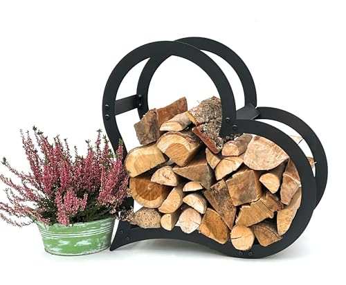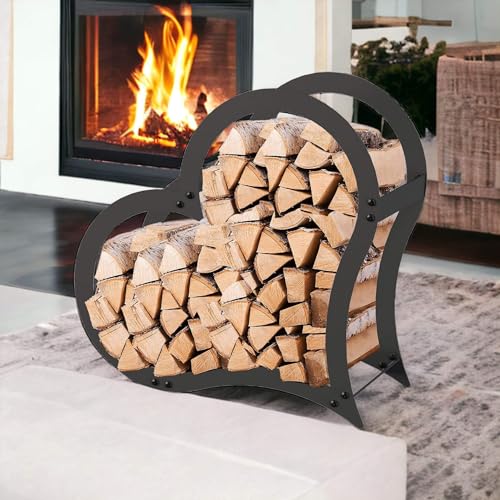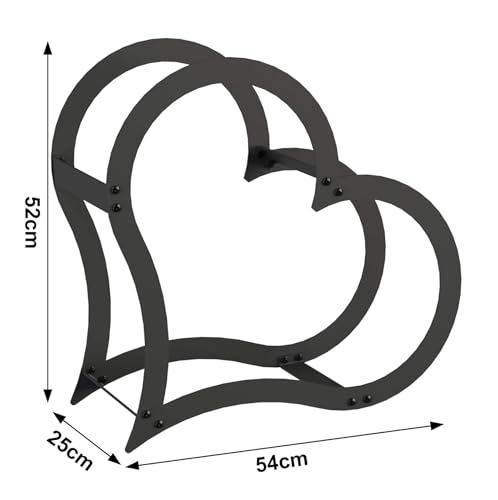 DanDiBo - دانديبو رف حطب داخلي معدني اسود قائم على شكل قلب 52 سم حامل حطب 96469 حامل حطب الحطب رف الحطب رف الحطب رف الحطب