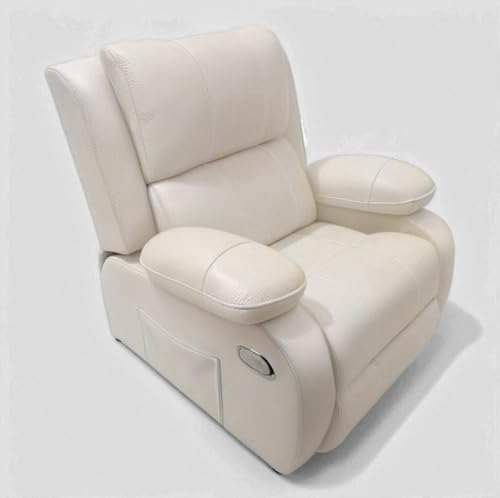 - تصميم فاخر: كرسي استرخاء فاخر مصنوع من الجلد الأبيض بتصميم أنيق وتفاصيل خياطة راقية ومساند الأذرع مصممين بعناية ليمنح مظهر راقي يناسب أي مساحة معيشة.
