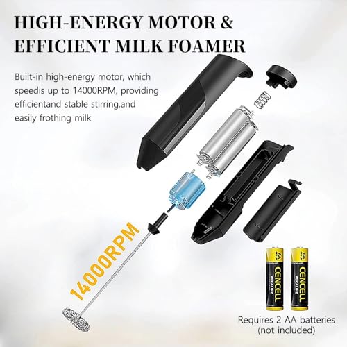 - - سرعة وكفاءة عالية ⚡️: مع محرك قوي 14000 دورة في الدقيقة، فإن ماكينة صنع الرغوة المحمولة هذه تخلق رغوة غنية في 15-20 ثانية فقط. تضمن الخفاقة المصنوعة من الستانلس ستيل الآمن غذائيًا والعمود الخالي من البيسفينول أ الاستخدام الآمن.