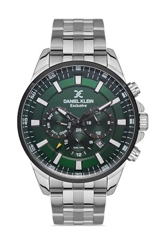 Daniel Klein - ساعة يد انالوج بعقارب بمينا بلون أخضر وسوار مع علبة فضي وأسود للرجال من دانيال كلاين موديل DK.1.13274-3