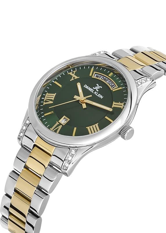 Daniel Klein - ساعة أنالوج ومينا أخضر وسوار فضي للرجال من دانيال كلاين، موديل DK.1.13227-6