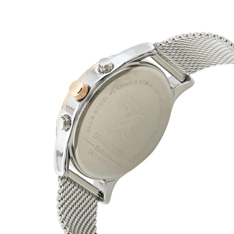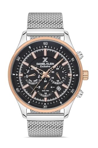 Daniel Klein - ساعة يد انالوج بعقارب تتميز بمينا لون اسود جان، باطار ذي الوان فضي وبينك وروز جولد مع سوار للرجال من دانيال كلاين - DK.1.13275-4