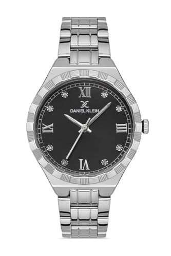 Daniel Klein - ساعة يد أنالوج بعقارب ومينا أسود غامق حريمي من دانيال كلاين، فضي - DK.1.13256-5