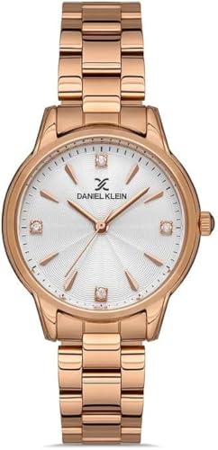 Daniel Klein - ساعة أنالوج بعقارب بمينا لون فضي للنساء من دانيال كلاين، وسوار لون وردي روز ذهبي - موديل DK.1.13247-3