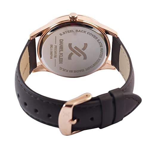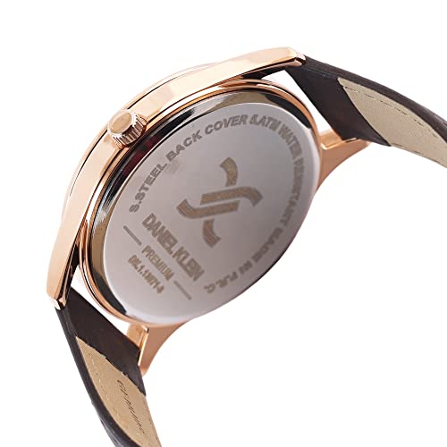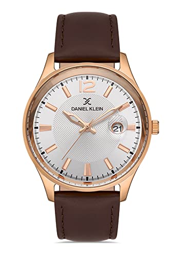 Daniel Klein - ساعة يد بسوار جلد للرجال من الفولاذ المقاوم للصدأ بلون ذهبي وردي من دانيال كلاين، موديل DK.1.13071-3، فضي