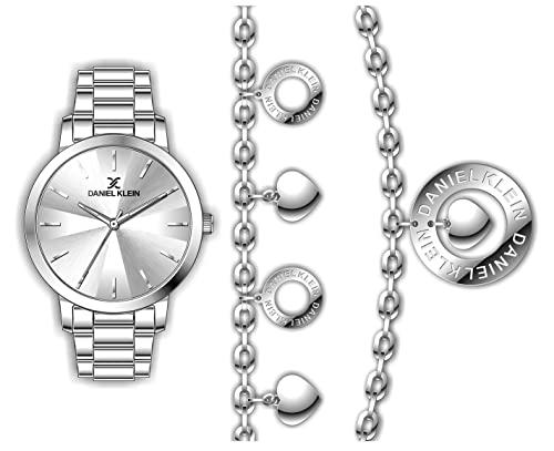 Daniel Klein - ساعة من دانيال كلاين للنساء، بمينا معدنية رصاصية وسوار فضي، عرض تناظري