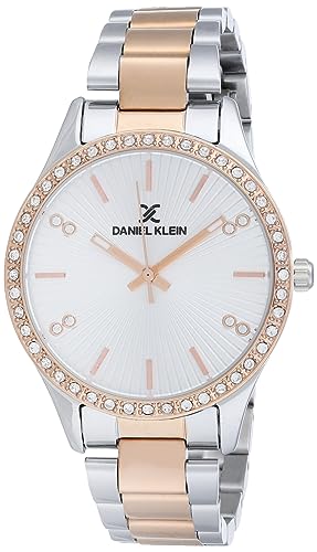Daniel Klein - ساعة حريمي بحركة كوارتز وشاشة عرض أنالوج من دانيال كلاين، سوار معدني فضي وروز جولد - DK.1.13284-3