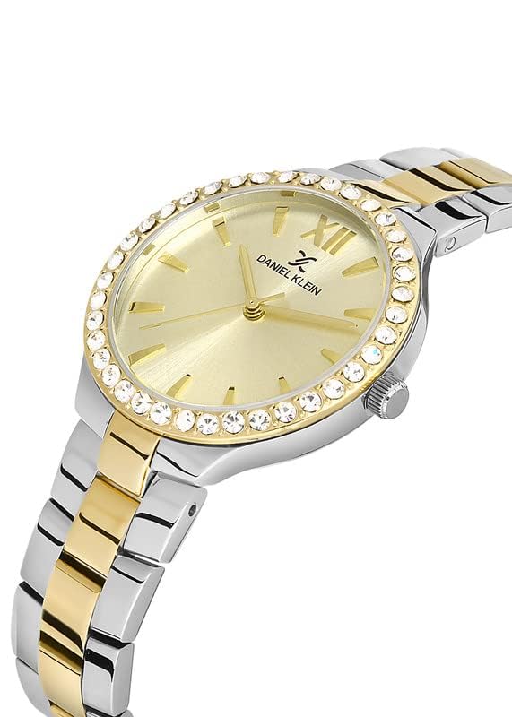 Daniel Klein - ساعة يد بحركة كوارتز وعرض انالوج للنساء من دانيال كلاين، سوار معدني فضي وذهبي - DK.1.13205-5