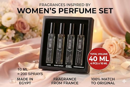 - مجموعة هدايا كاملة للعطور النسائية - عبوة عطر نسائية أنيقة تتميز بـ 4 عطور مستوحاة مما يجعلها مثالية للارتداء اليومي والمناسبات الخاصة والهدايا.