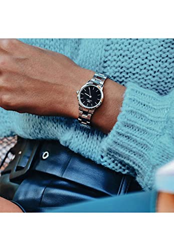 Daniel Wellington - ساعة انالوج دائرية بسوار ستانلس ستيل ومينا اسود للنساء من دانيال ولينغتون طراز DW00100208 - فضي, فضي