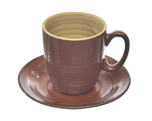 Danny Home. - طقم فناجين شاي مع أطباق فناجين سيراميك بتصميم أنيق سعة 300 ملليلتر من داني هوم، طقم من 12 قطعة، أحمر غامق (Wine)