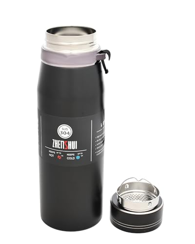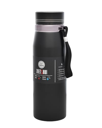 DANNY HOME - زجاجة حرارية 9127 معزولة بتفريغ الهواء وغطاء من داني هوم من فولاذ مقاوم للصدأ للسفر والرياضة والأنشطة الخارجية والمشروبات الباردة والساخنة - متعددة الألوان - أسود