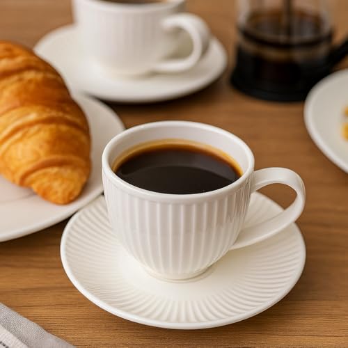 - 12 قطعة تشمل أكواب القهوة والأطباق.