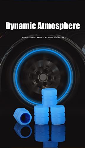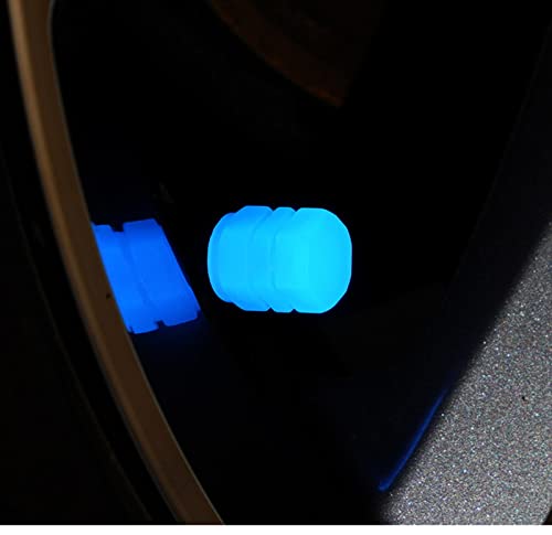 DANONI - أغطية ساق صمام الإطار للسيارات، أغطية متوهجة ومضيئة ومقاومة للتآكل وبتوافق عالمي لصمام عجلات وإطارات السيارات والشاحنات وسيارات الدفع الرباعي الرياضية والموتوسيكلات والدراجات، 4 قطع، أزرق