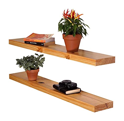 Dantawood - ارفف عائمة من خشب الاكاسيا 24 انش للحائط مجموعة قطعتين تثبت على الحائط لغرفة النوم والحمام بني