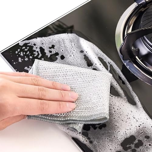 - حجم مثالي: تأتي قطع قماش التنظيف السلكية الخاصة بنا بحجم أكبر قليلًا من إسفنجة المطبخ العادية، بأبعاد 20×20 سم، وتتميز بمقاومتها للتآكل وقابلة لإعادة الاستخدام ولن تتمزق وتُعد مثالية لإزالة بقع الطعام الصعبة والشحوم من الأطباق والطاولات والبلاط والمواقد.