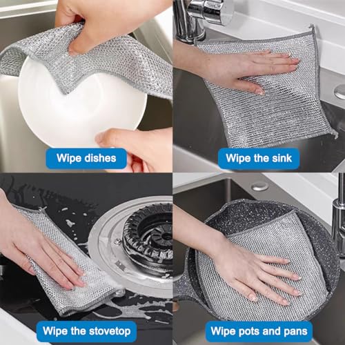 - قطعة قماش لتنظيف الأطباق مزودة بطبقة سلكية للمطبخ: تتضمن العبوة 6 قطع من قماش التنظيف متعددة الأغراض، وتُعد إضافة رائعة لمطبخك، كما تحافظ على الأطباق وطاولات المطبخ نظيفة ومرتبة.