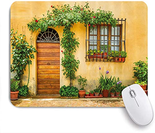 DAOPUDA - قاعدة ماوس العاب منسوجة من خيوط مايكرو مطبوعة بصورة بلكونة ايطالية واواني زهور ونباتات خضراء في توسكاني ممحاة داوبودا
