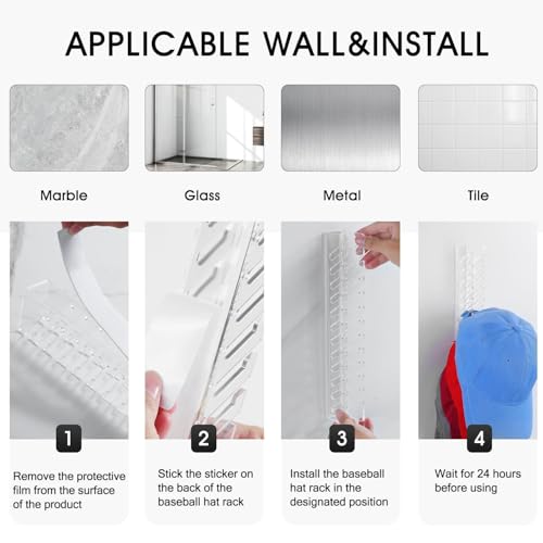 - سهل التركيب: لا حاجة للثقب، وفر على نفسك متاعب إتلاف الجدران والأبواب. يأتي منظم قبعات البيسبول مع لاصق ذاتي للاستخدام. ملاحظة: يرجى تذكر إزالة الغشاء الواقي قبل الاستخدام.