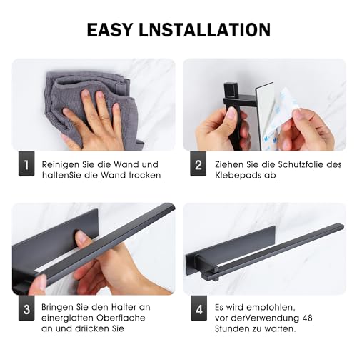 Daoun - حامل فوط ذاتي اللصق بلون أسود من الفولاذ المقاوم للصدأ مقاس 35 سم للحمام والمطبخ من داون