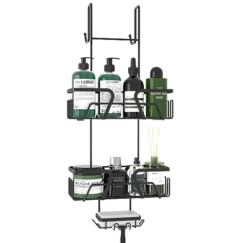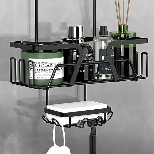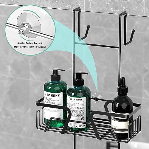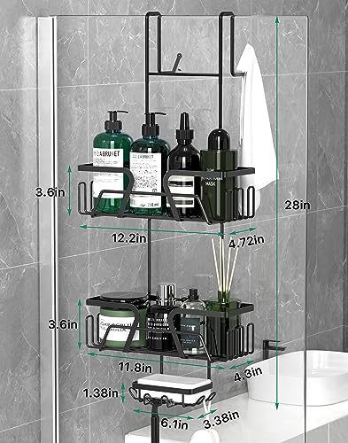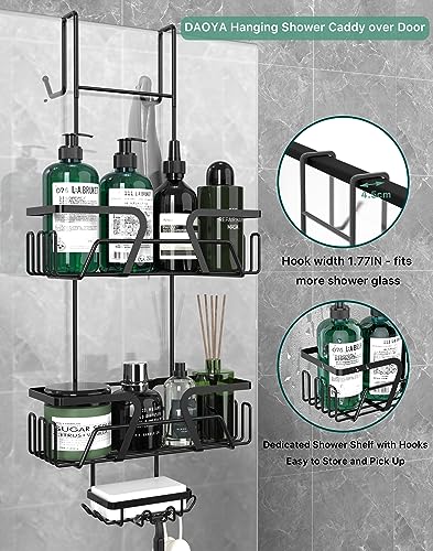 DAOYA - حامل دش معلق فوق الباب من داويا - رف تخزين سلة مع صابون وخطافات منظم الستانلس ستيل لباب الحمام الزجاجي اسود