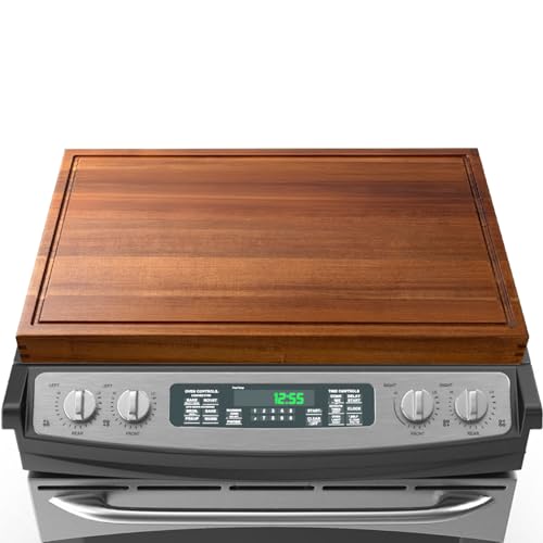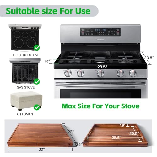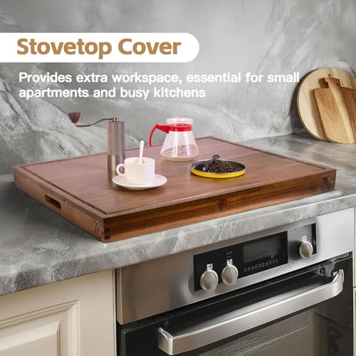 DAOYOUSKY - غطاء موقد لوح نودل خشبي من خشب الأكاسيا بمقاس 76.2×55.88 سم، من دايوسكي، لوح تقطيع لغطاء سطح الموقد بمقابض وأخدود للعصائر، لموقد الغاز والكهرباء، غطاء لحوض المطبخ لزيادة مساحة سطح العمل