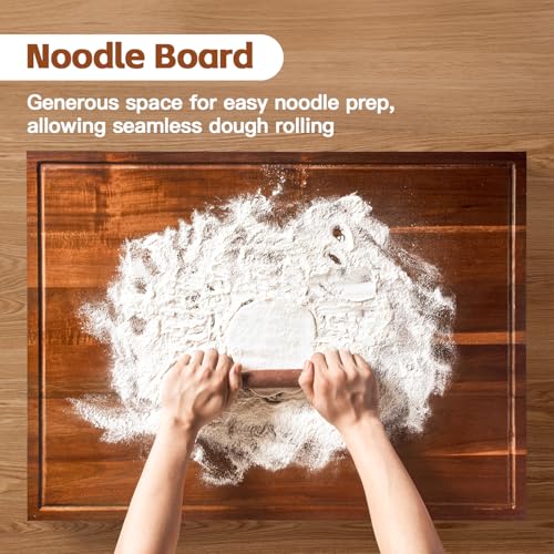 - متعدد الاستخدامات وعملي: تصميم متعدد الاستخدامات يسمح باستخدام لوح الغطاء كصينية تقديم أو لوح تشاركوتيري مع مقابض مقطوعة لسهولة النقل، لوح نودلز للف العجين السلس، صينية عثمانية لتحويل المسند إلى سطح طاولة عملي، أو لوح تقطيع مع أخدود عصير عميق لسهولة تحضير الطعام