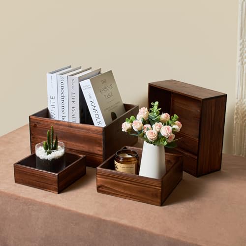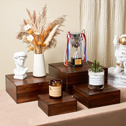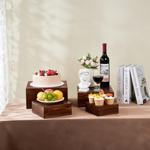 DAOYOUSKY - حامل خشب مربع ريفي للكيك والكب كيك لعرض الحلويات والطعام والبسكويت وعروض الحرف اليدوية مناسب لحفلات الزفاف وحفلات البوفيه والمناسبات الخاصة من داويوسكي، عبوة من 4 قطع