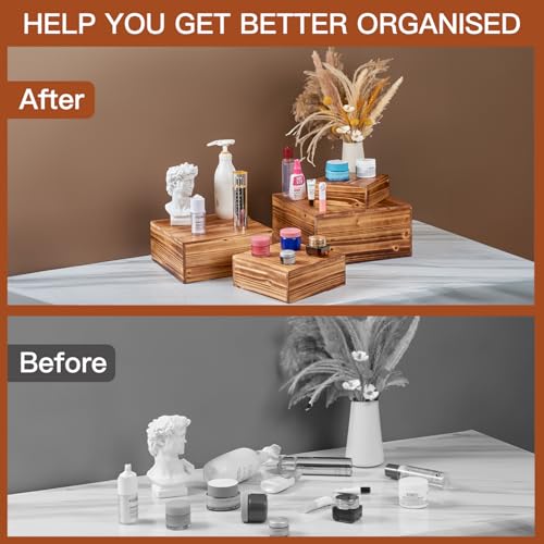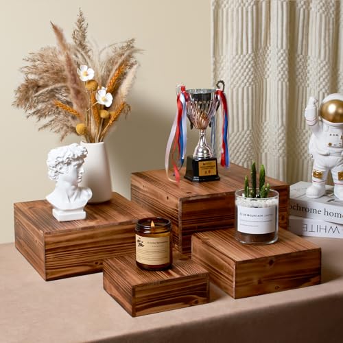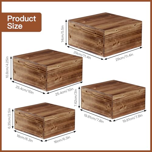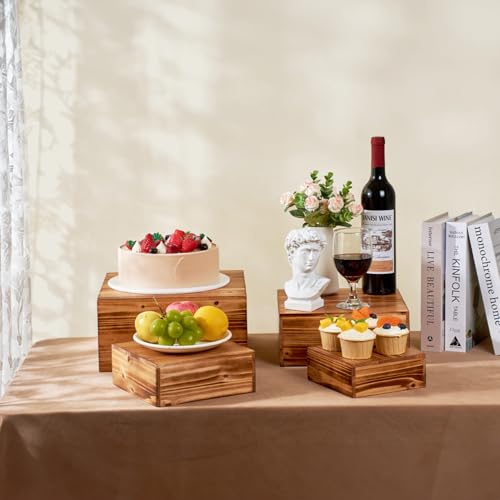 DAOYOUSKY - مجموعة من 4 حوامل خشبية ريفية للكعك والكب كيك من داويوسكي، حامل عرض خشبي مربع لحفلات الزفاف، طاولة بوفيه مكعبة للحلوى والطعام والبسكويت وعروض الحرف اليدوية