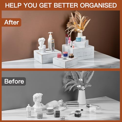 - مثالية لأي مناسبة: تعتبر رافعات العرض الخشبية هذه مثالية لإنشاء عروض مذهلة في حفلات الزفاف وأعياد الميلاد وحفلات استقبال المولود والمعارض التجارية والمناسبات الخاصة الأخرى. يعزز التصميم الأنيق والأحجام المختلفة جماليات أي مكان، مما يترك انطباعًا دائمًا لدى ضيوفك
