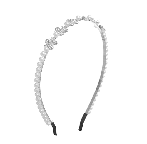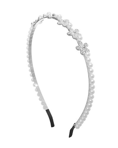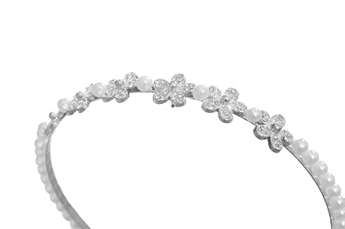 Daphane - شريط رأس مزين باللؤلؤ مزين بالزهور من دافان - أبيض فضي